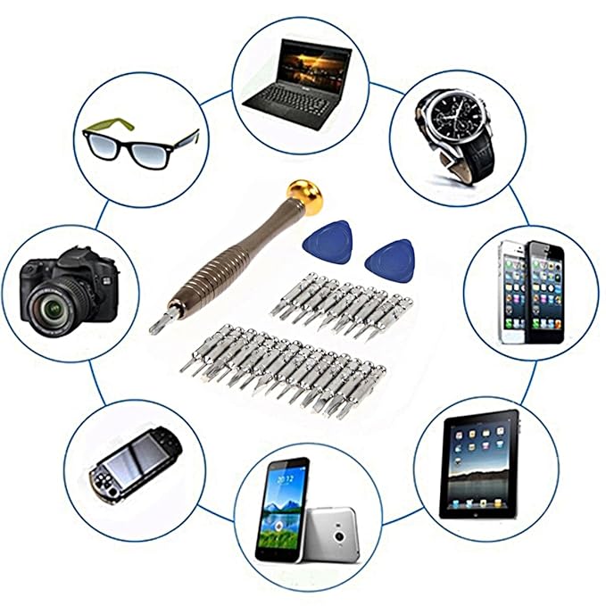 - The Precision Screwdriver Repair Tool Kits with full set of 24 batch heads adopt the precision bearing design, flexible and easy to use. One grip handle in the aviation alloy material manufacture,light and durable.