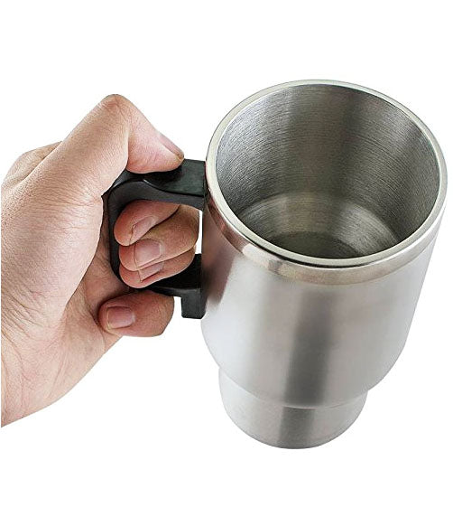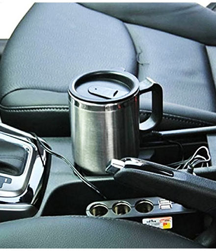 Stainless steel 12V Car mug sits snugly in your car cup holder and plug into the cigarette lighter / USB with your laptop or Mobile Charger socket. High quality stainless steel inside and outside Removable 12 volt car cigarette lighter wired plug with USB 16 Ounce / 450 ml capacity Color: silver only. Vacuum insulated Made of high quality food grade stainless steel and no joint less structure. Eco-friendly, reusable 100% recyclable Non-leaching and toxin-free, Anti-corrosion special coating. No leak & easy open twist top and keep fresh, light, durable, and easy to carry