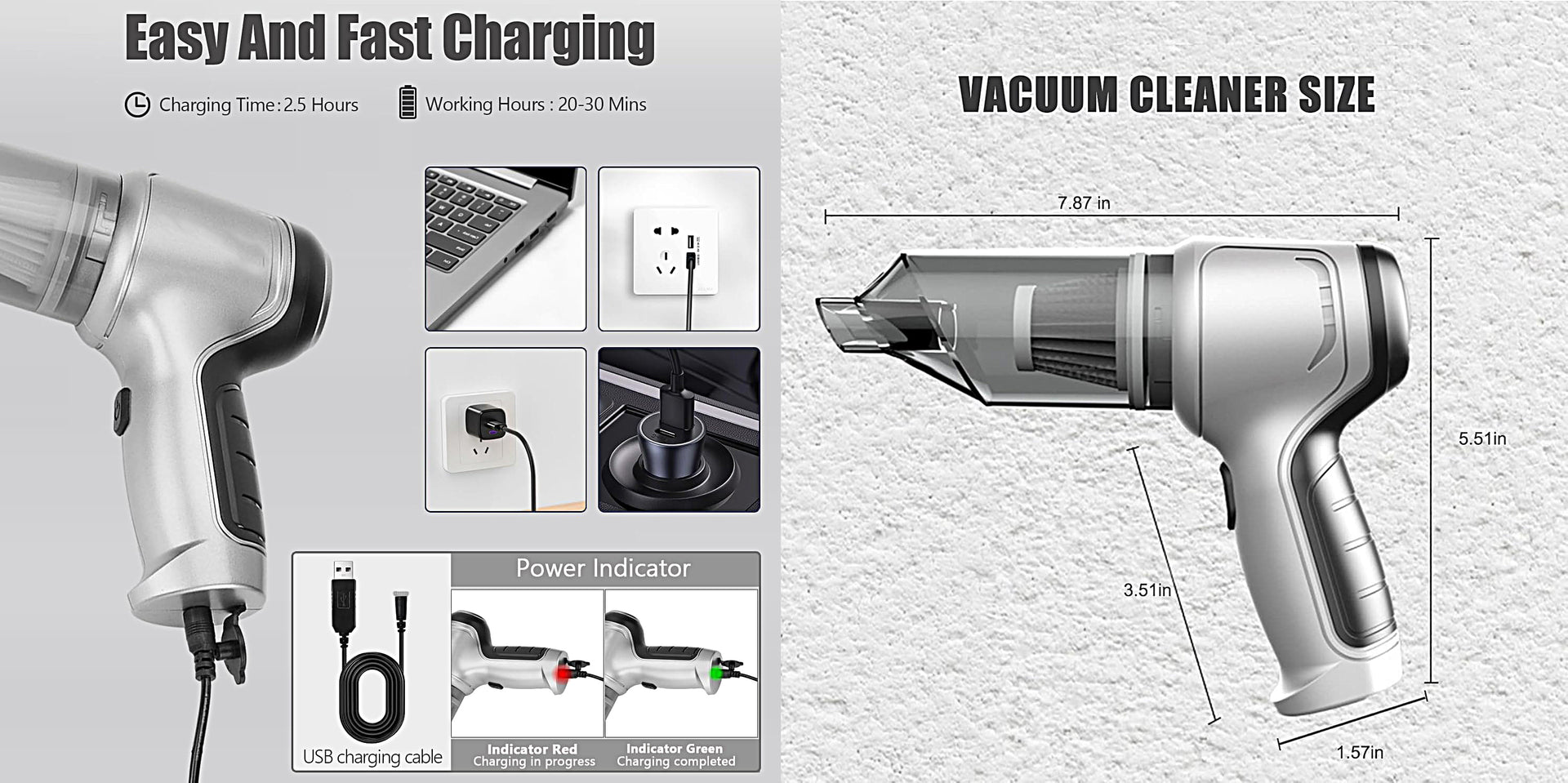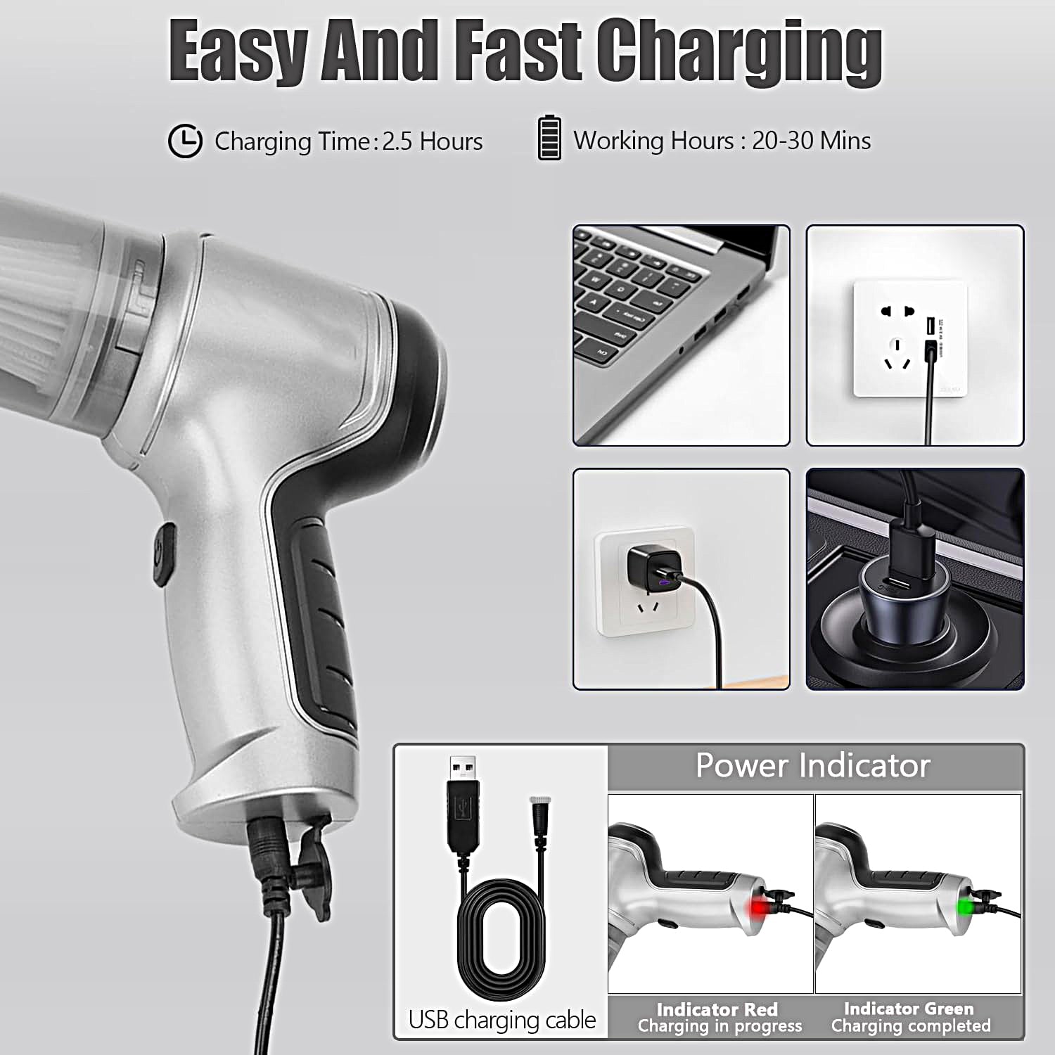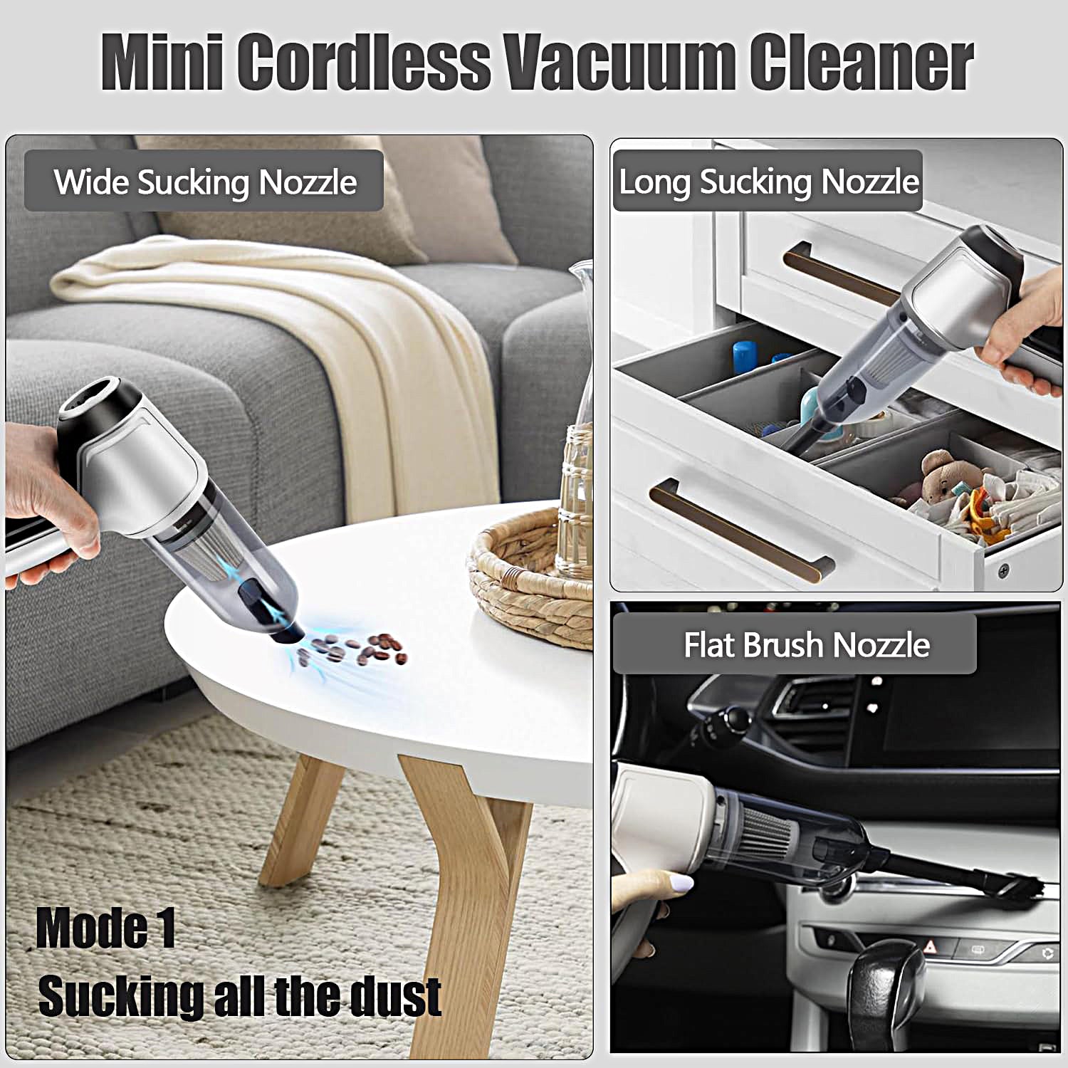 Cordless Mini Vacuum Cleaner and Air Duster with Multi-Nozzles for Car,Home,Office - WIRE-VACUUM